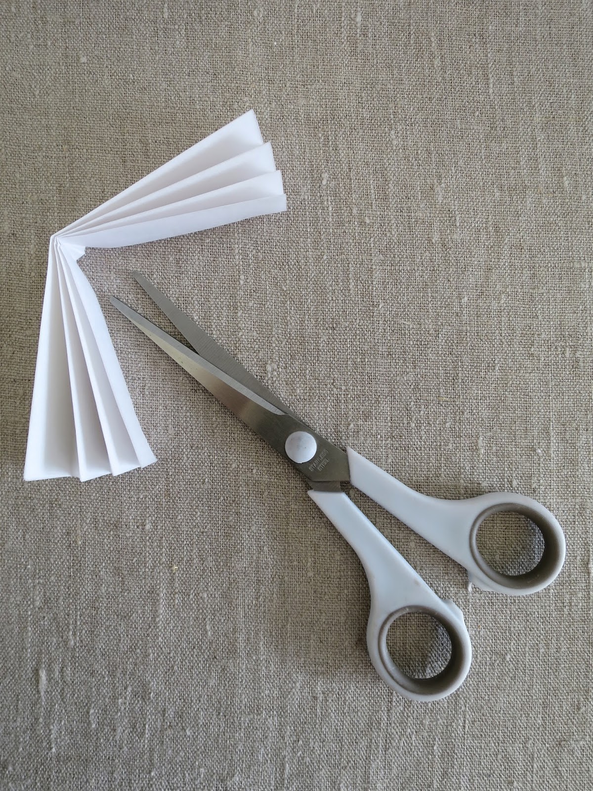 Put the three sheets of tissue paper together and making sure the paper is at its widest, make concertina folds (about 1 cm apart) to the end.